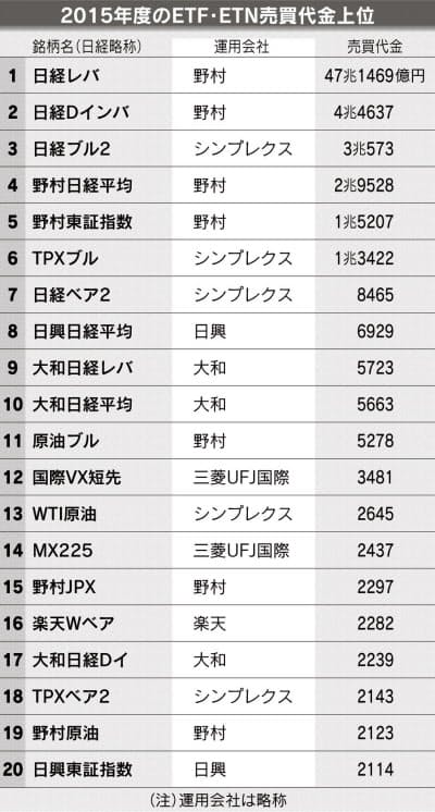 15年度の売買代金 レバレッジ型に人気集中 日本経済新聞
