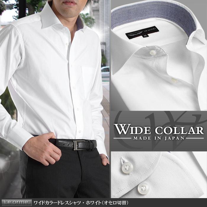 日本製 綿100 ワイドカラー メンズドレスシャツ ホワイト オセロ切替 Le Orme ワイシャツ 長袖 ビジネス Yシャツ Rcp スーツスタイルmarutomi